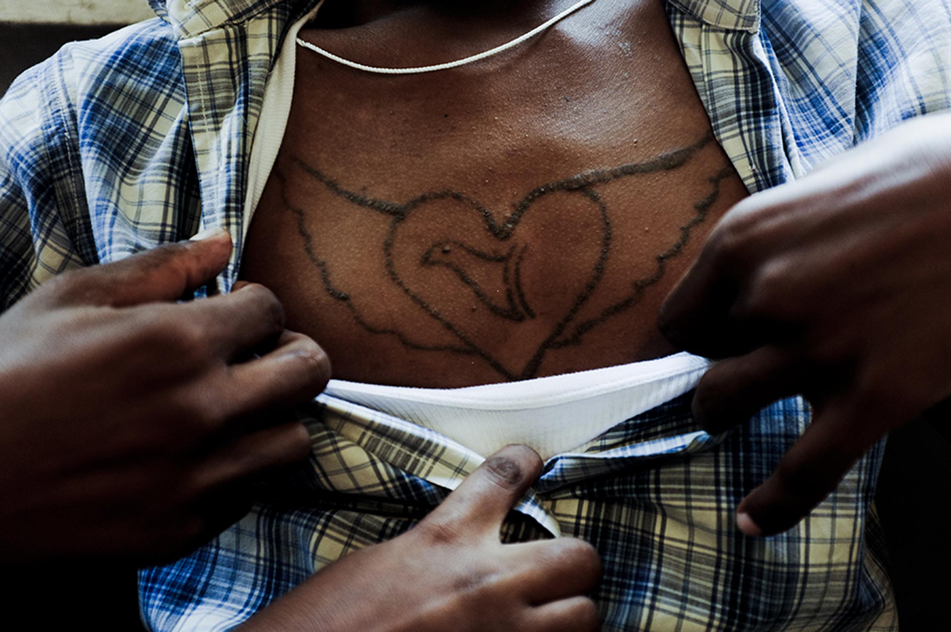 I tatuaggi, spesso disegnati da amici o, in alcuni casi, dai propri genitori, sono spesso a tema sacro ed assumono un duplice valore: quello di "protettore" religioso e quello di "legame" con i propri familiari ed amici lontani. È come se di fronte alle avversità venisse attivata una sorta di modalità d'emergenza, fatta da oggetti e sentimenti riferibili alla sfera intima, familiare e religiosa, in grado di consolare e infondere forza e resistenza.